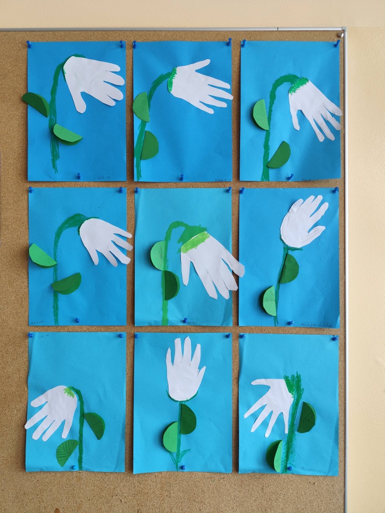 Pod koniec miesiąca poczuliśmy już powiew zbliżającego się przedwiośnia. W naszej sali zrobiło się wiosennie za sprawą pięknych prac plastycznych przedstawiających przebiśniegi – pierwsze zwiastuny wiosny