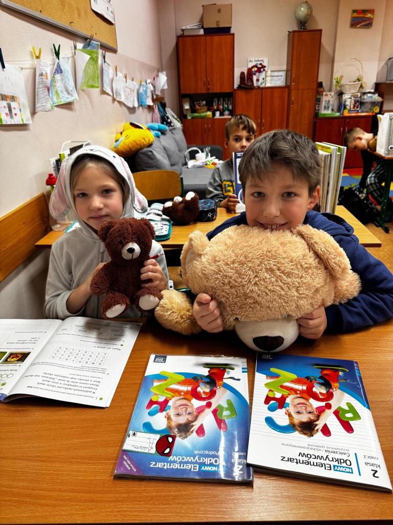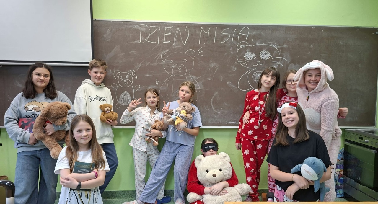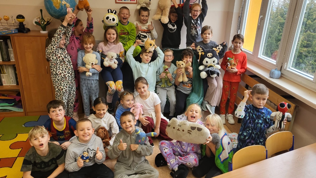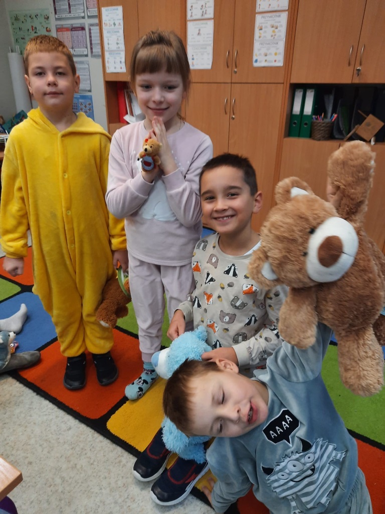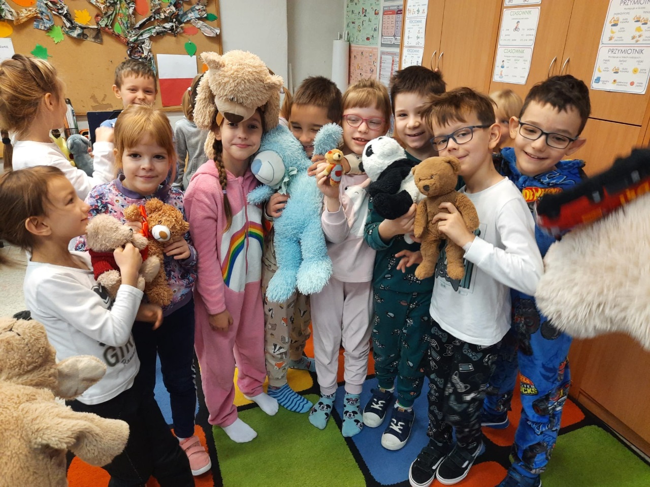 W tym tygodniu w naszej szkole odbył się także Dzień Pluszowego Misia. Z tej okazji uczniowie przebrali się w piżamy i zabrali ze sobą swojego ulubionego misia