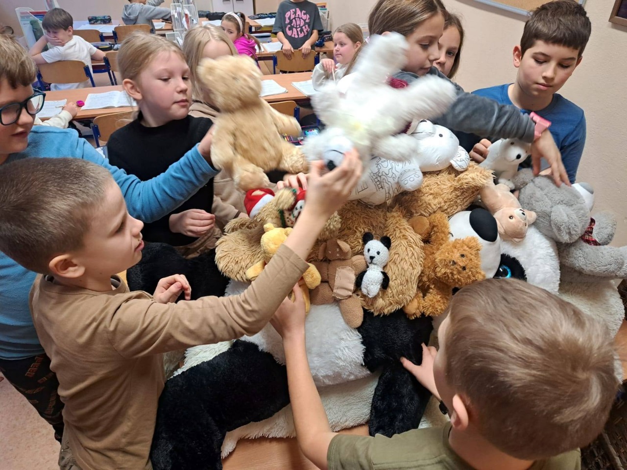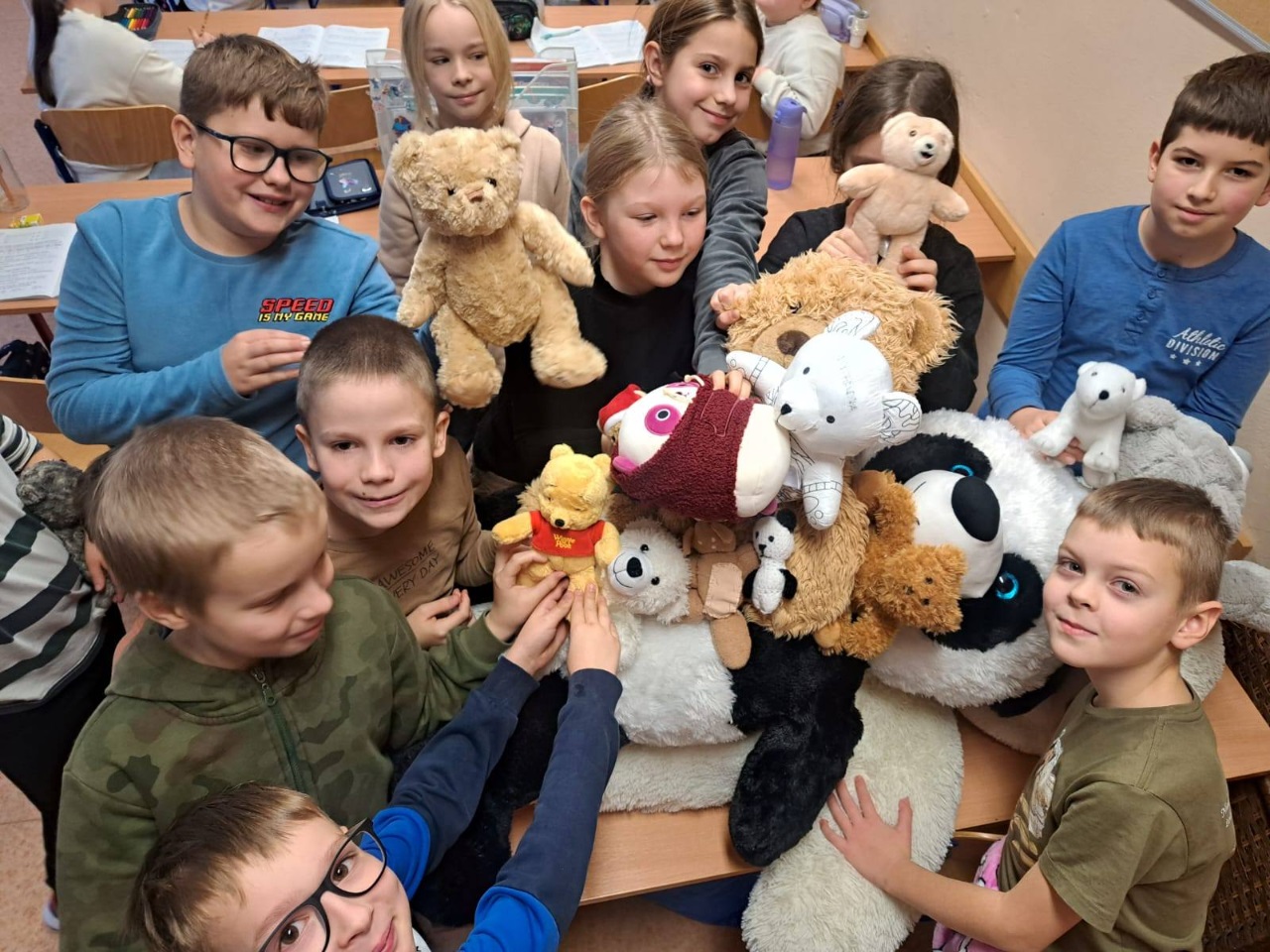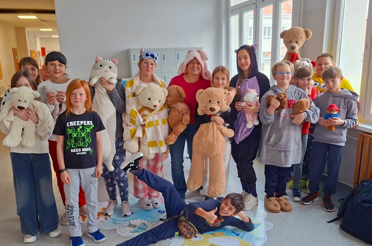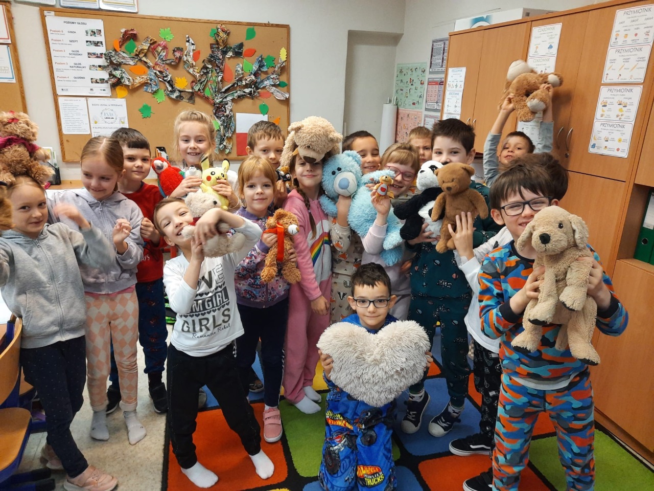 W tym tygodniu w naszej szkole odbył się także Dzień Pluszowego Misia. Z tej okazji uczniowie przebrali się w piżamy i zabrali ze sobą swojego ulubionego misia