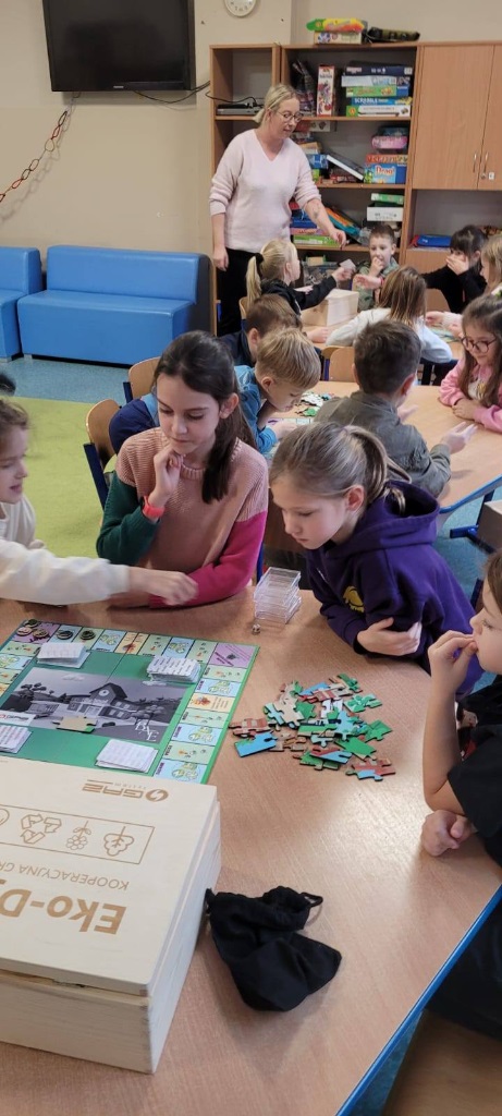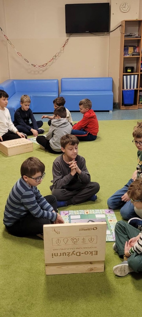 Dziś uczniowie klasy 2b wraz z wychowawcą oraz nauczycielami świetlicy szkolnej wzięli udział w ekologicznej grze EkoDyżurni, prowadzonej przez przedstawicielkę Baltic Academy of Education.