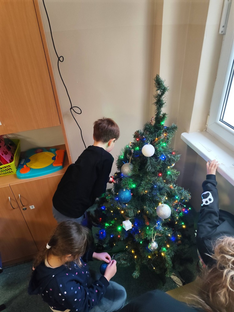 W świetlicy panowała niesamowita, świąteczna atmosfera: razem ubieraliśmy choinkę, tworzyliśmy przeróżne prace plastyczne, a także korzystaliśmy z ostatnich w tym roku chwil radości na placu zabaw