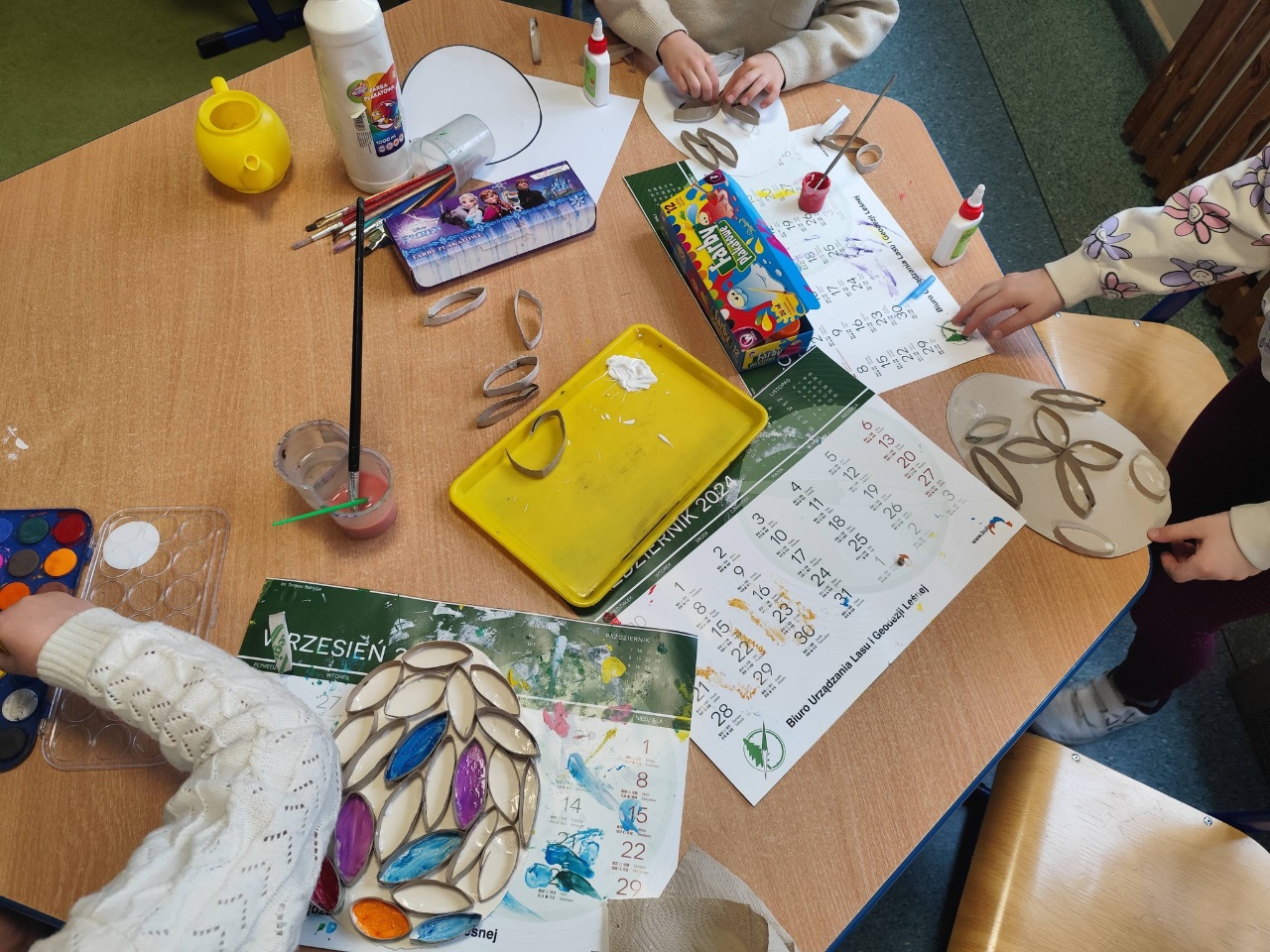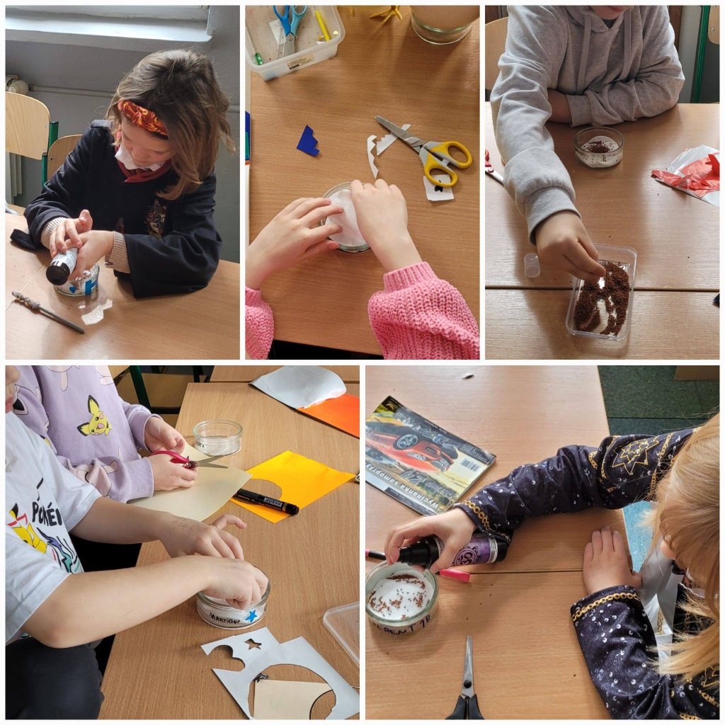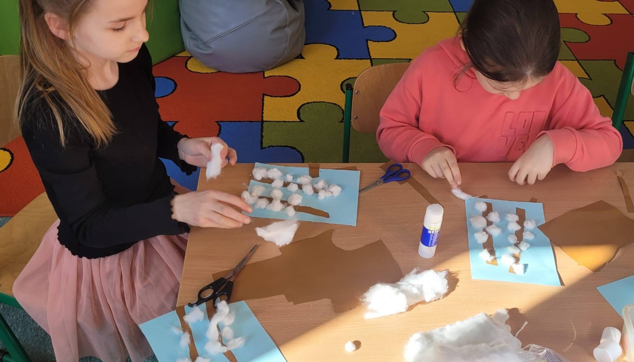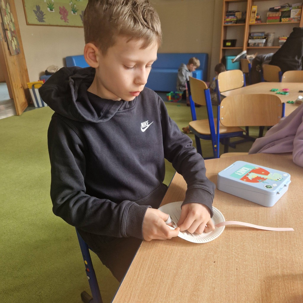 Nie zabrakło również czasu na zabawy w grupie i swobodne aktywności – dzieci tworzyły z koralików oraz uczyły się wykonywać ruchome prace plastyczne z owadami.