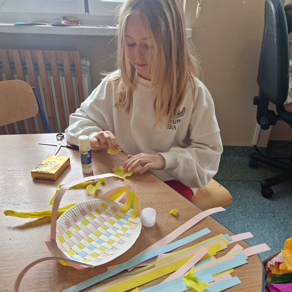 Powstawały piękne prace plastyczne z pisankami, papierowe koszyczki, bazie z waty, a także wspólnie zasadziliśmy rzeżuchę.