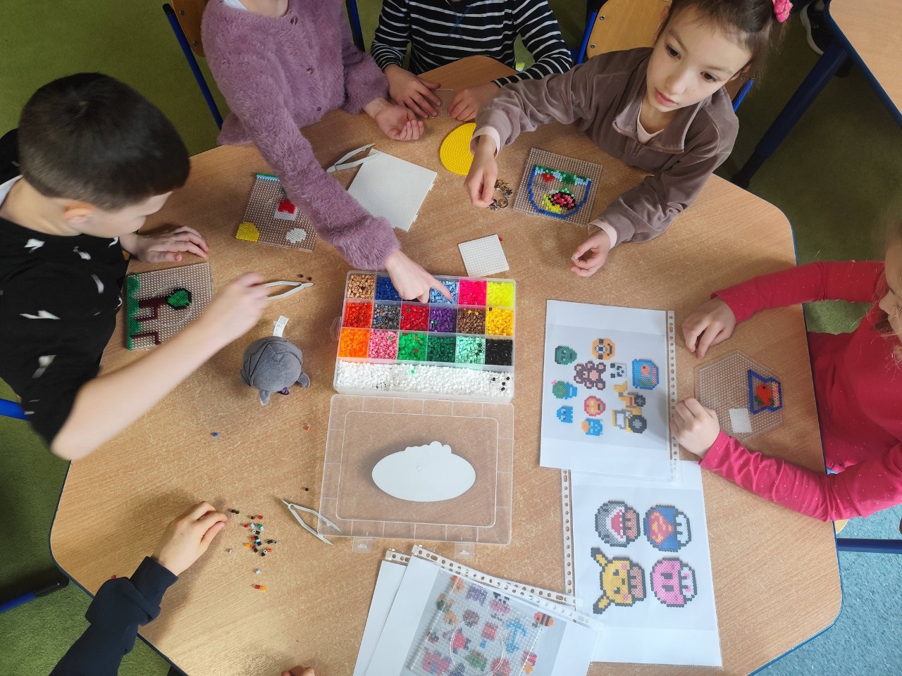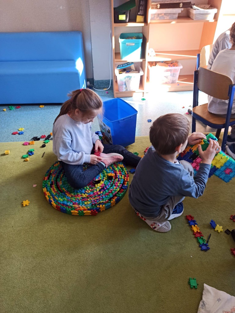 Nie zabrakło również czasu na swobodną zabawę – dzieci chętnie korzystały z koralików do prasowania, rozwijając swoją kreatywność i cierpliwość. Gdy tylko pogoda na to pozwalała, spędzaliśmy czas na świeżym powietrzu, ciesząc się pierwszymi oznakami nadchodzącej wiosny