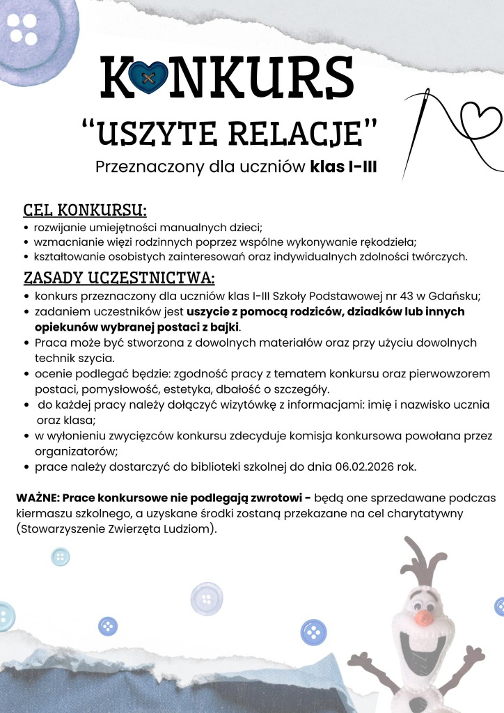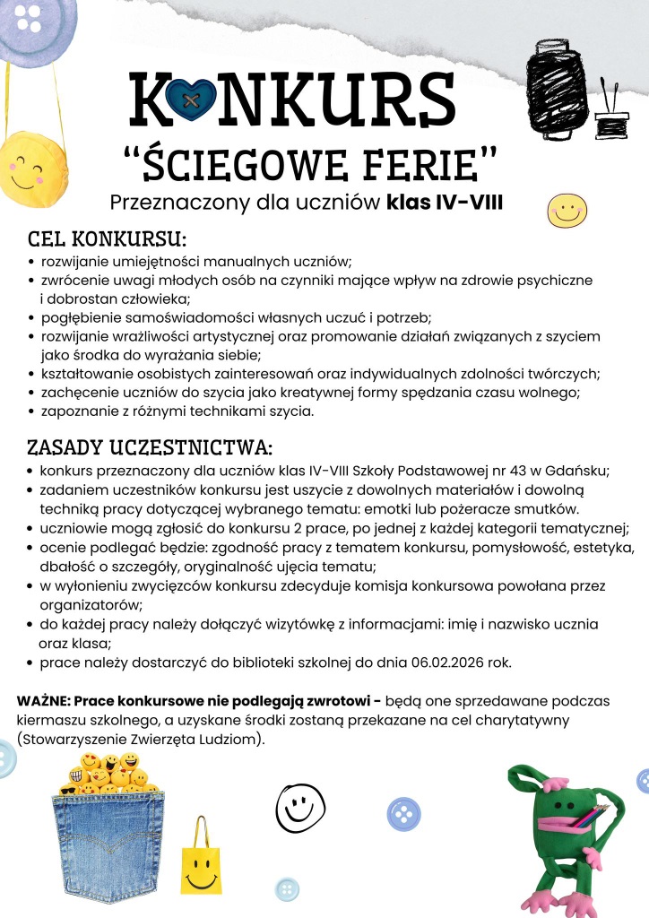 Uczniów zmęczonych zimowymi aktywnościami ⛷️🛷⛸️i tych ceniących inne formy spędzania czasu wolnego zachęcamy do wzięcia udziału w konkursie. - Szkoła Podstawowa nr 43 im. Jana Kochanowskiego