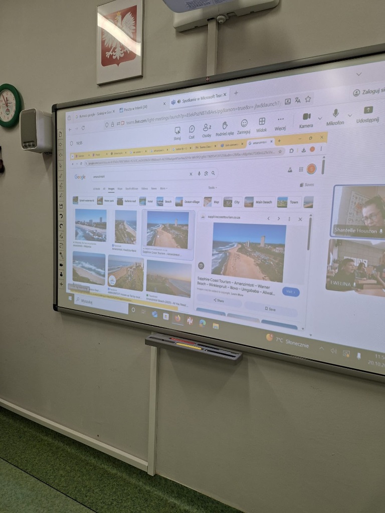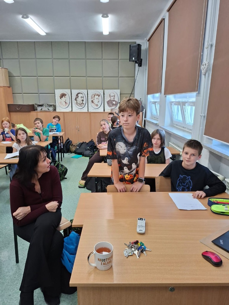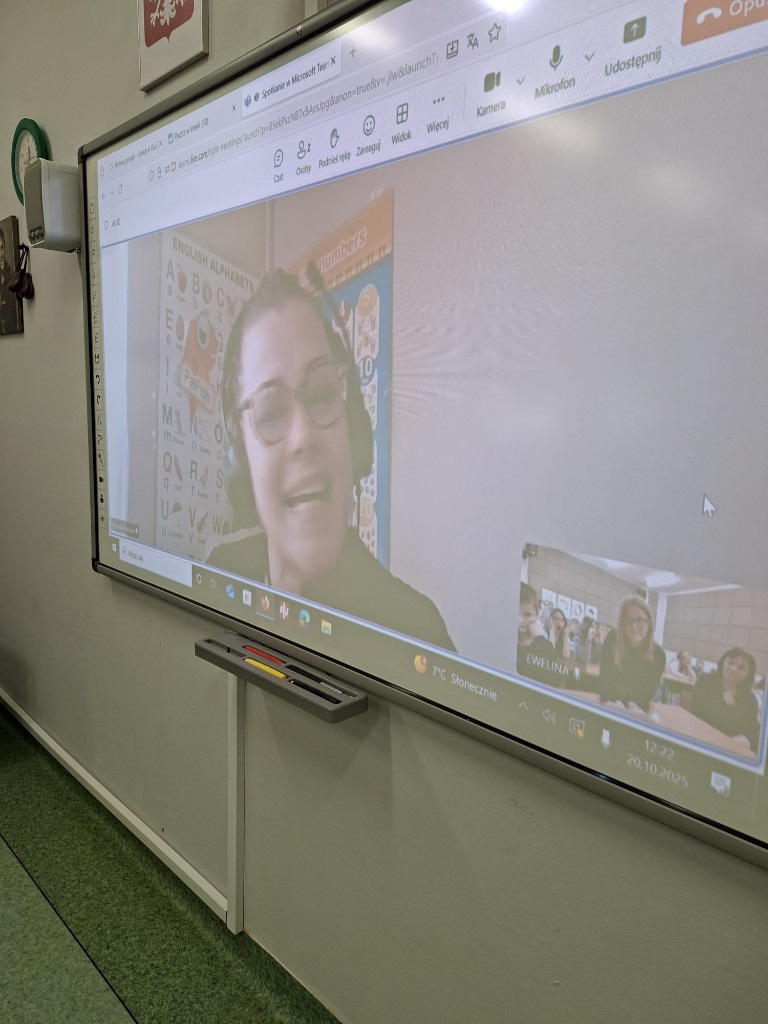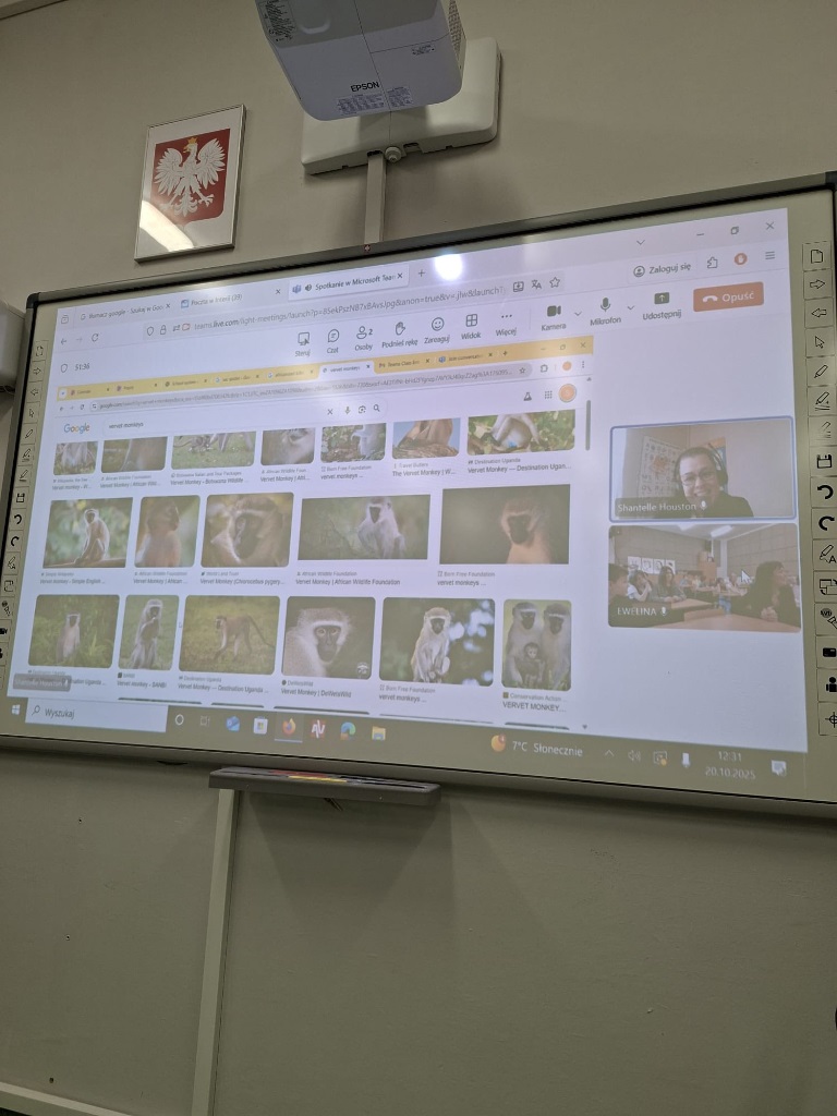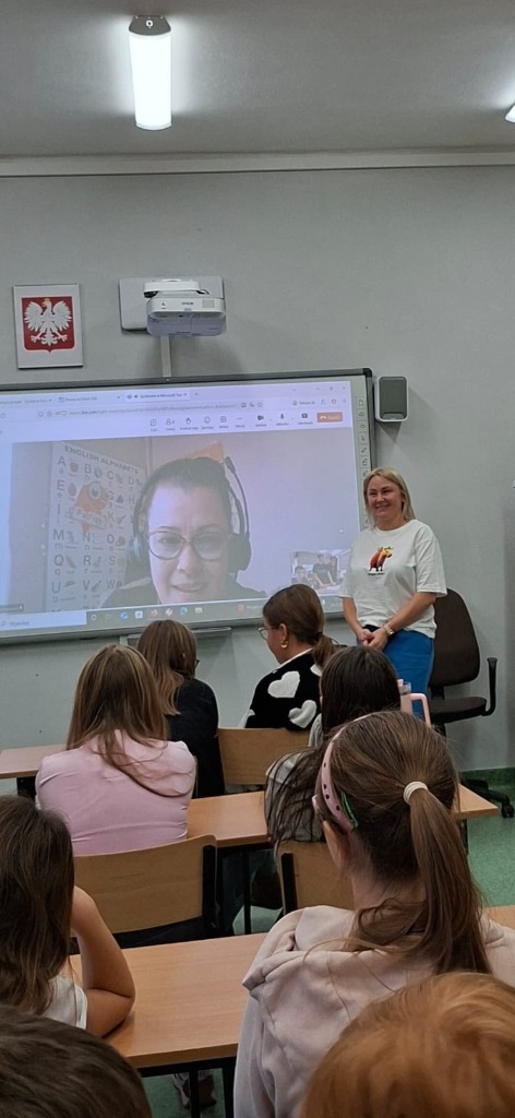 W ramach spotkania z Panią Shantall, nauczycielką z RPA, uczniowie zadawali pytania i dowiedzieli się jakie są potrawy, zwierzęta oraz jak wygląda szkolnictwo w tym kraju. W trakcie spotkania niektórzy przełamali barierę językową. Brawo!!!