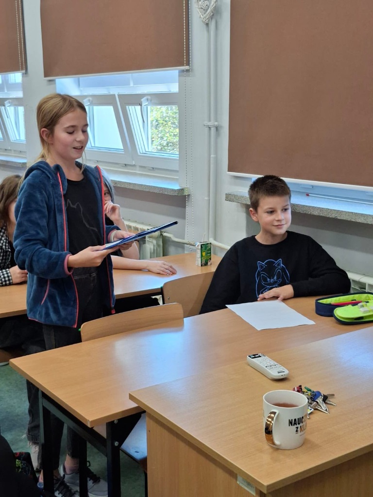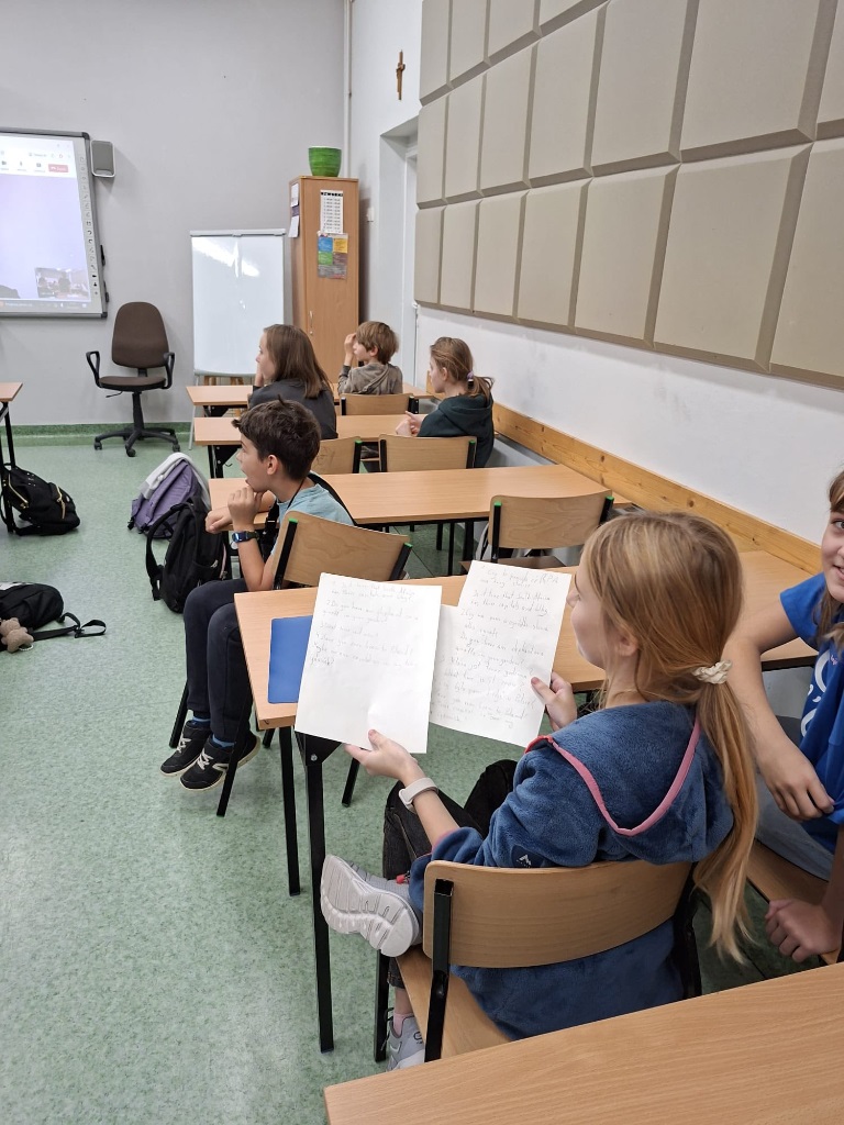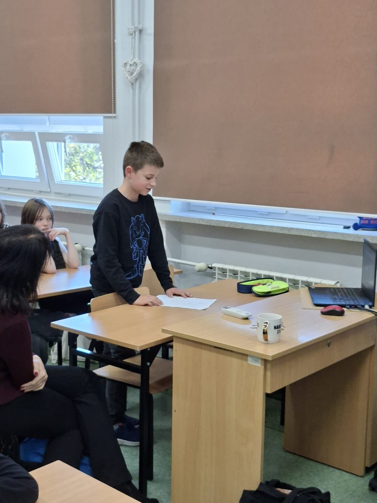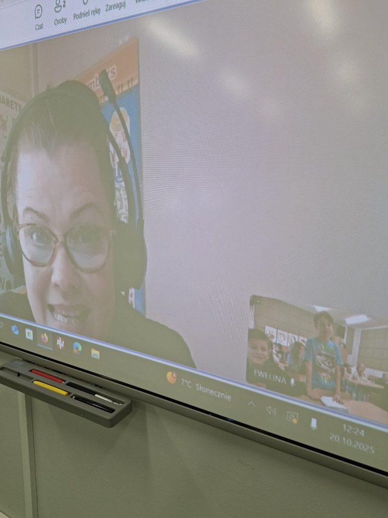 W ramach spotkania z Panią Shantall, nauczycielką z RPA, uczniowie zadawali pytania i dowiedzieli się jakie są potrawy, zwierzęta oraz jak wygląda szkolnictwo w tym kraju. W trakcie spotkania niektórzy przełamali barierę językową. Brawo!!!