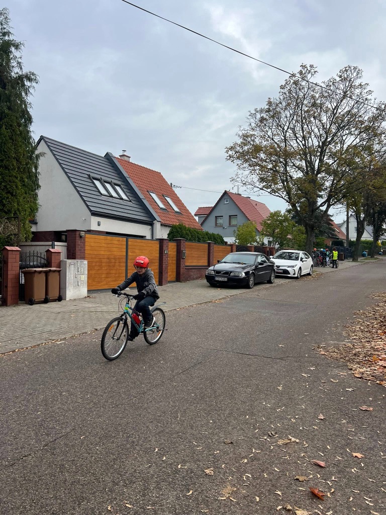 Dla uczniów klasy 5a. Podczas zajęć uczniowie poznali najważniejsze znaki drogowe oraz zasady bezpiecznego poruszania się po drogach. Dzieci uczyły się, jak prawidłowo zachowywać się na skrzyżowaniach, sygnalizować manewry i reagować na sytuacje spotykane w ruchu miejskim. Dzięki praktycznym ćwiczeniom każdy uczestnik mógł sprawdzić swoje umiejętności w jeździe na rowerze i utrwalić zasady bezpieczeństwa. To była pouczająca i pełna wrażeń lekcja o odpowiedzialnym uczestnictwie w ruchu drogowym!