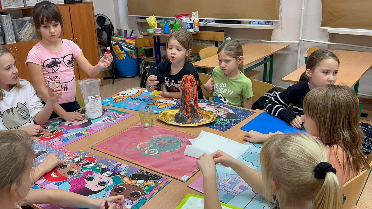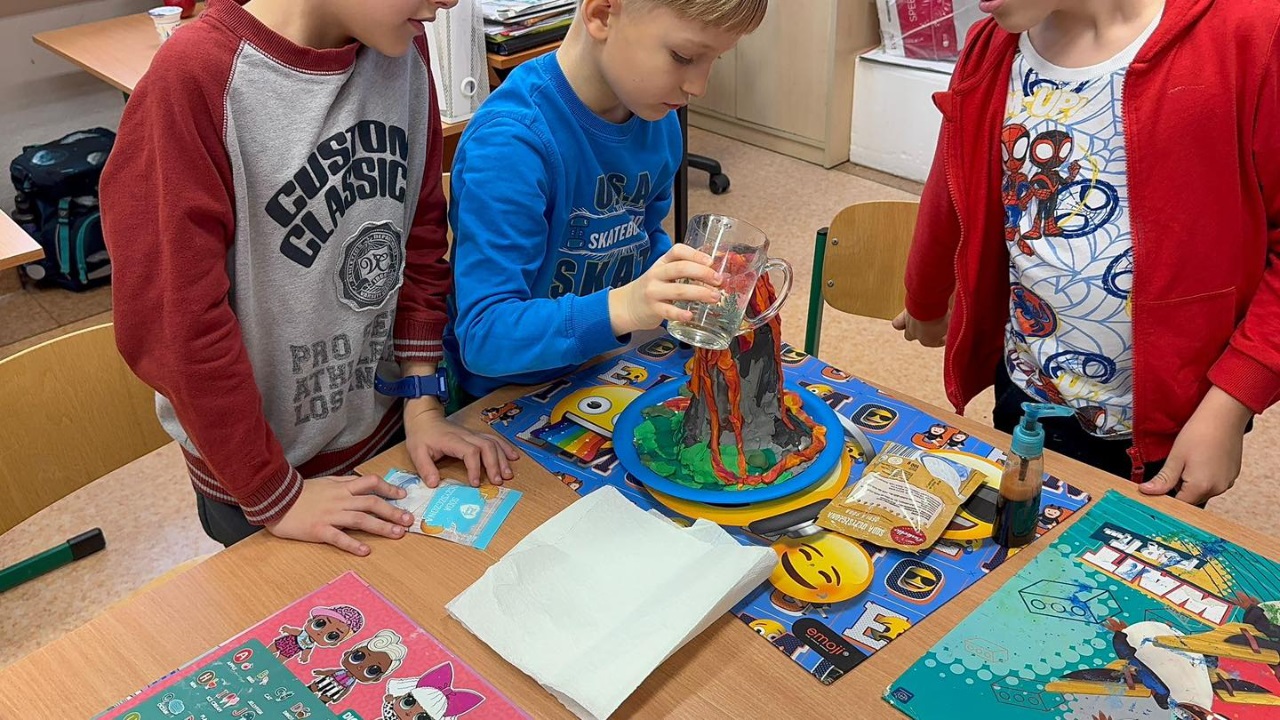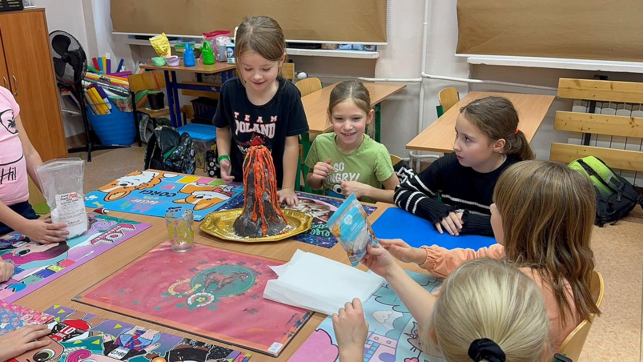 Realistycznie wyglądające wulkany i efektowna erupcja wywołały zachwyt, uśmiechy i mnóstwo emocji u naszych małych przyrodników.