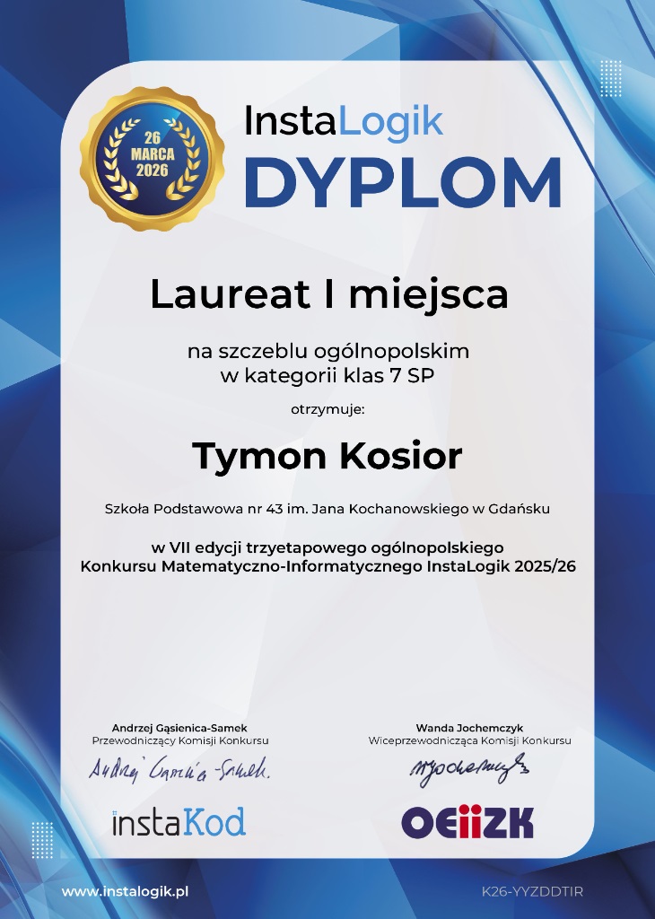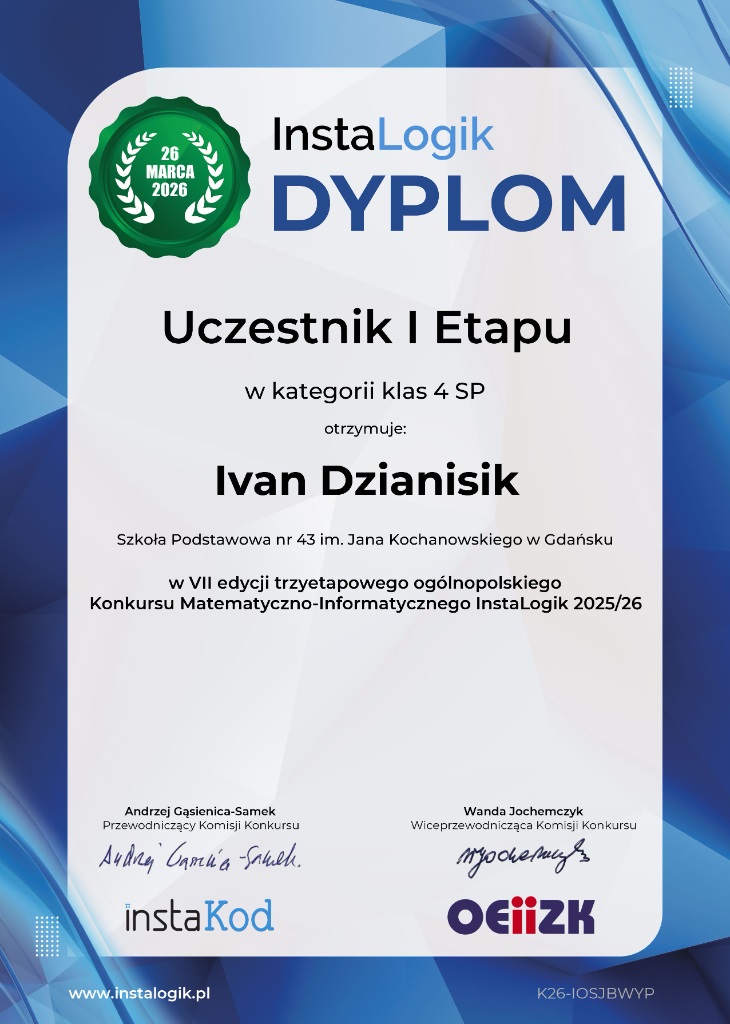 InstaLogik to popularyzatorski konkurs matematyczno-informatyczny dla uczniów klas 4-8 SP.